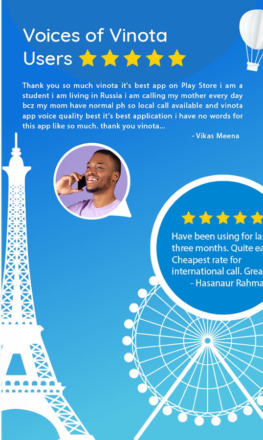 Это приложение Винота для международных звонков приносит удобство в вашу жизнь. Независимо от того, в какой стране вы живете, вы можете совершать звонки в любую другую страну через мобильный VoIP.