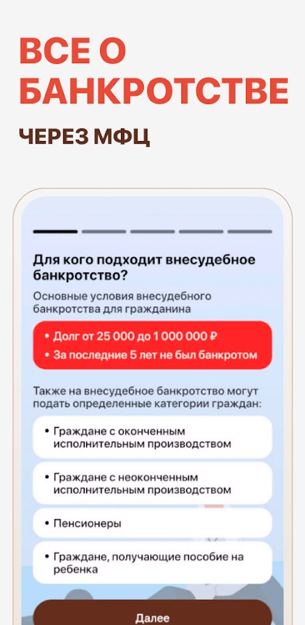 Установите «Банкротство: МФЦ Мои Документы» и начните процесс банкротства просто, быстро и удобно!