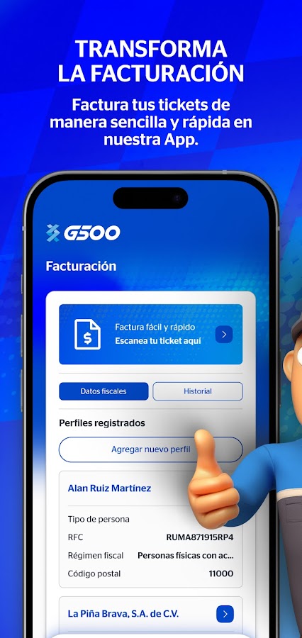 Зарегистрируйтесь в приложении My G500 и станьте частью команды G500. Добавлять монеты для собственного потребления очень просто, просто зарегистрируйте чек о покупке и все! Вы начнете зарабатывать монеты, чтобы обменивать их на невероятные призы. С помощью G500 Billing вы можете легко и просто зарегистрироваться, вам просто нужно иметь под рукой платежный талон. Вы хотите заправиться? С нашим локатором станций это очень просто, мы расскажем вам, как туда добраться. Мы здесь, чтобы выслушать вас, напишите нам по адресу (servicio.clientes@g500network.com), мы будем следить за вашими потребностями.