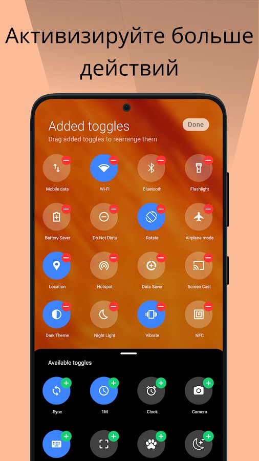 Персонализировать мобильный телефон легче, когда есть удобный центр управления! Классная панель уведомлений и быстрые действия!