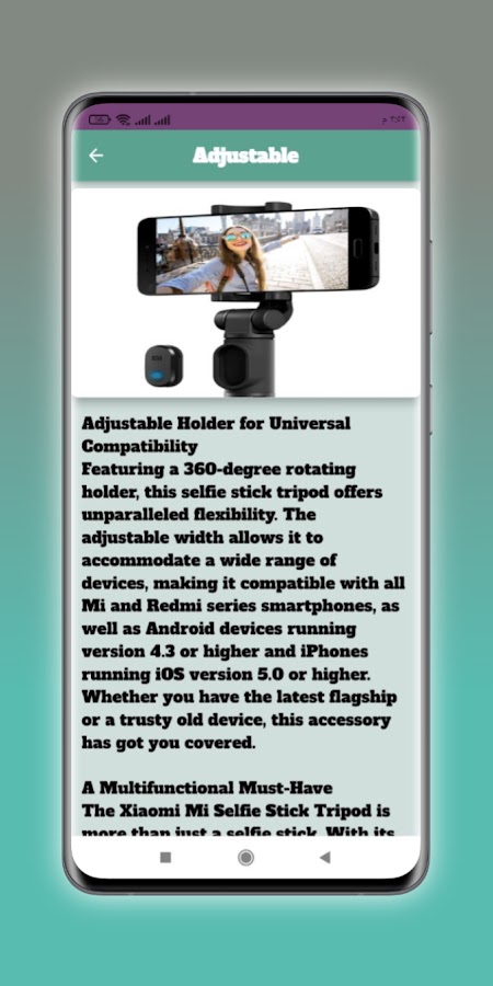 Скачайте приложение Mi Selfie Stick Tripod Guide для Android бесплатно - последняя версия (12) уже доступна для установки на ваш телефон или планшет.