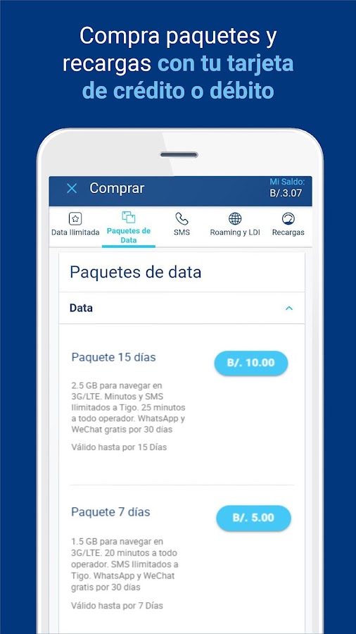• Пополнение онлайн: если вы хотите пополнить свой баланс, с Mi Tigo вы можете сделать это легко и безопасно. Кроме того, вы можете отсканировать код своих предоплаченных карт, чтобы применить Easy Recharge. Не выходите из равновесия!