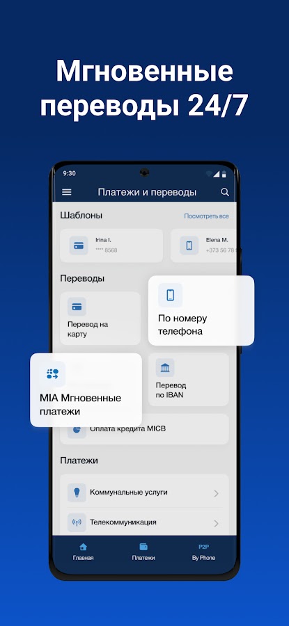 • Быстрые P2P переводы по номеру телефона (P2P by Phone / Send to Friend);