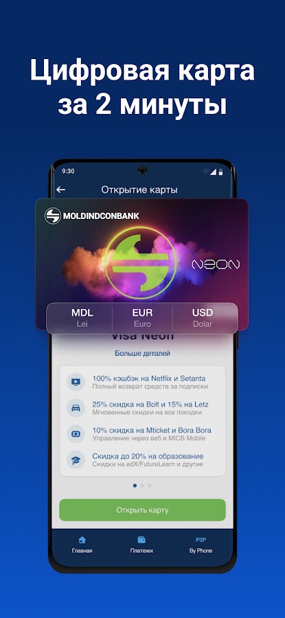Приложение MICB Mobile Banking доступно клиентам (физические лица) BC «Moldindconbank» S.A. и представляет следующие преимущества: