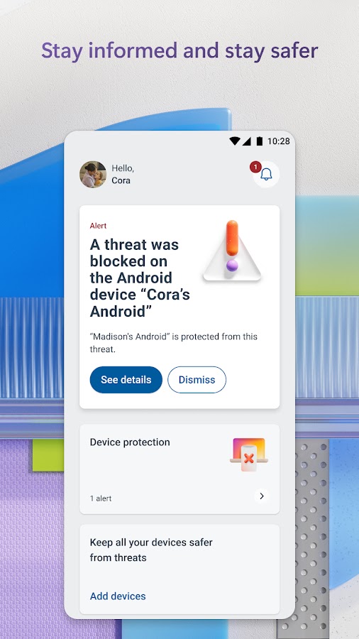 • Защитите свои устройства от вредоносных угроз с помощью антивирусного сканирования3, оповещений на нескольких устройствах и экспертных советов.