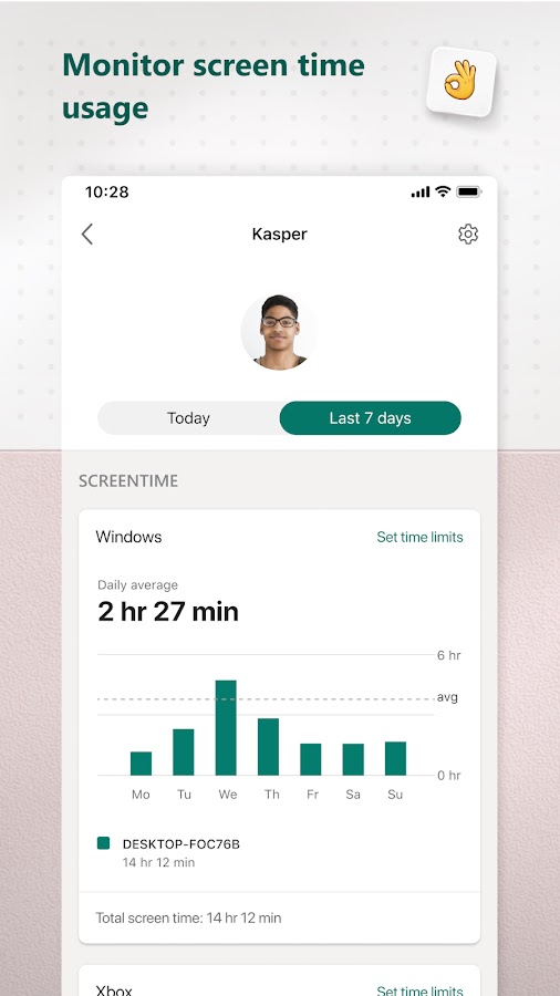 • Ограничения по времени использования устройств — Xbox и Windows.