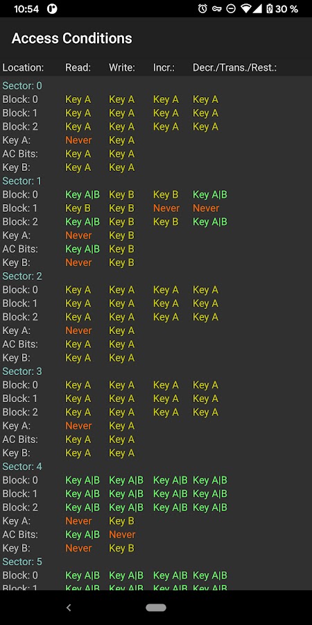 • Декодирование и кодирование условий доступа MIFARE Classic