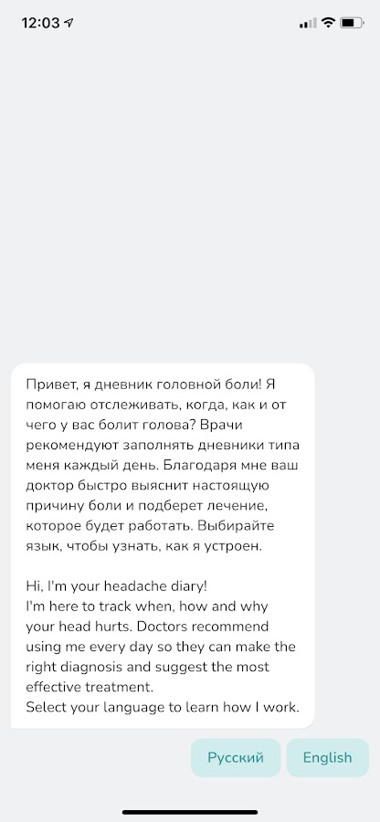 Интерактивный дневник головной боли. Опрашивает каждый день