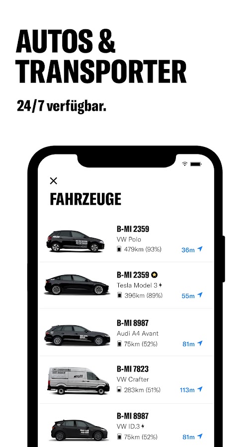 Будь то ежедневная поездка на работу, поездка или переезд – MILES предлагает вам подходящий автомобиль на любой случай. Наслаждайтесь доступностью 24 часа в сутки, 7 дней в неделю, включая страховку и дозаправку/зарядку, а также гибкие сроки аренды и скидки на долгосрочные тарифы.