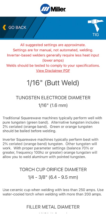Информация о Miller Weld Setting Calculator