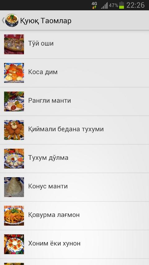 Мана энди палов, хоним, дўлма, шашлик, норин, оби нон, патир, сомса, юпқа, бўғирсоқ, чучвара, мастава, сумалак, нишолда ва бошқа кўплаб ноёб рецептлар қўл остингизда.