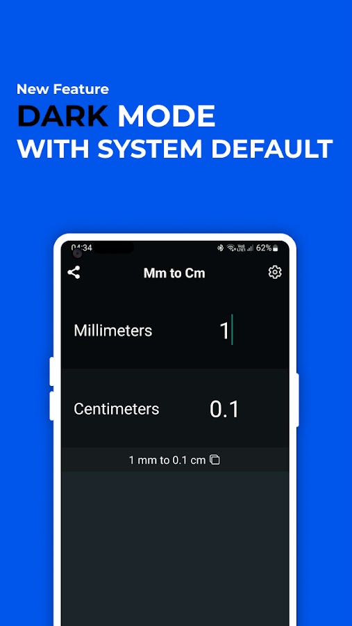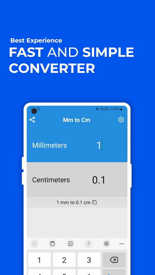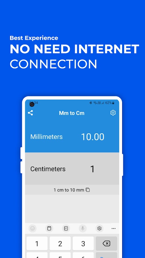 С помощью этого приложения вы можете легко конвертировать миллиметры в сантиметры (мм в см) и сантиметры в миллиметры (см в см).
