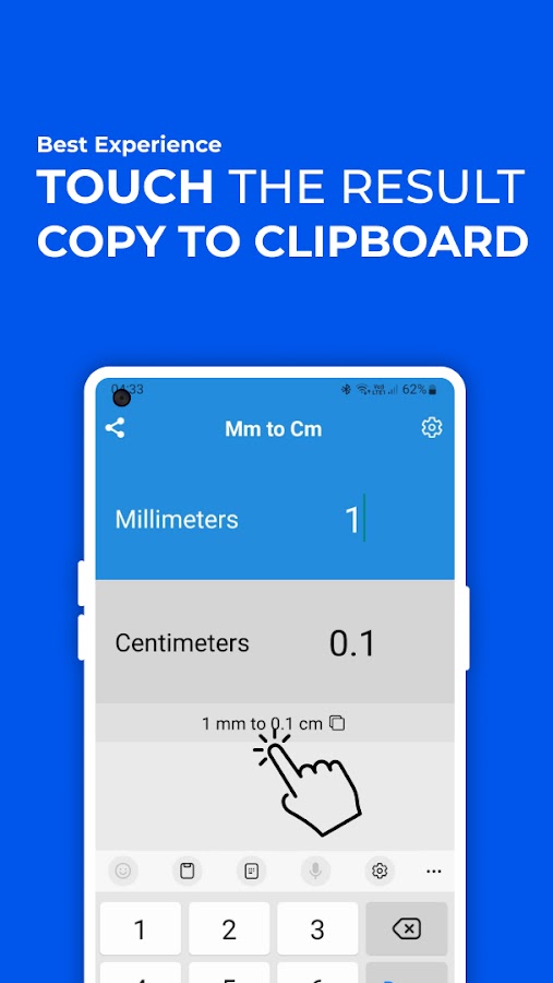— Сантиметры в миллиметры: Аналогично коснитесь поля ввода сантиметров, введите свое число и увидите, как оно быстро преобразуется в миллиметры.