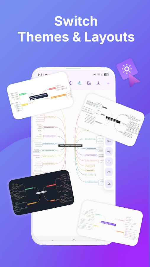 Свободно настраивайте, перестраивайте и корректируйте свои ментальные карты в соответствии со своим уникальным стилем мышления. Перемещайте узлы, переименовывайте темы, реструктурируйте ветви и сохраняйте полный контроль.