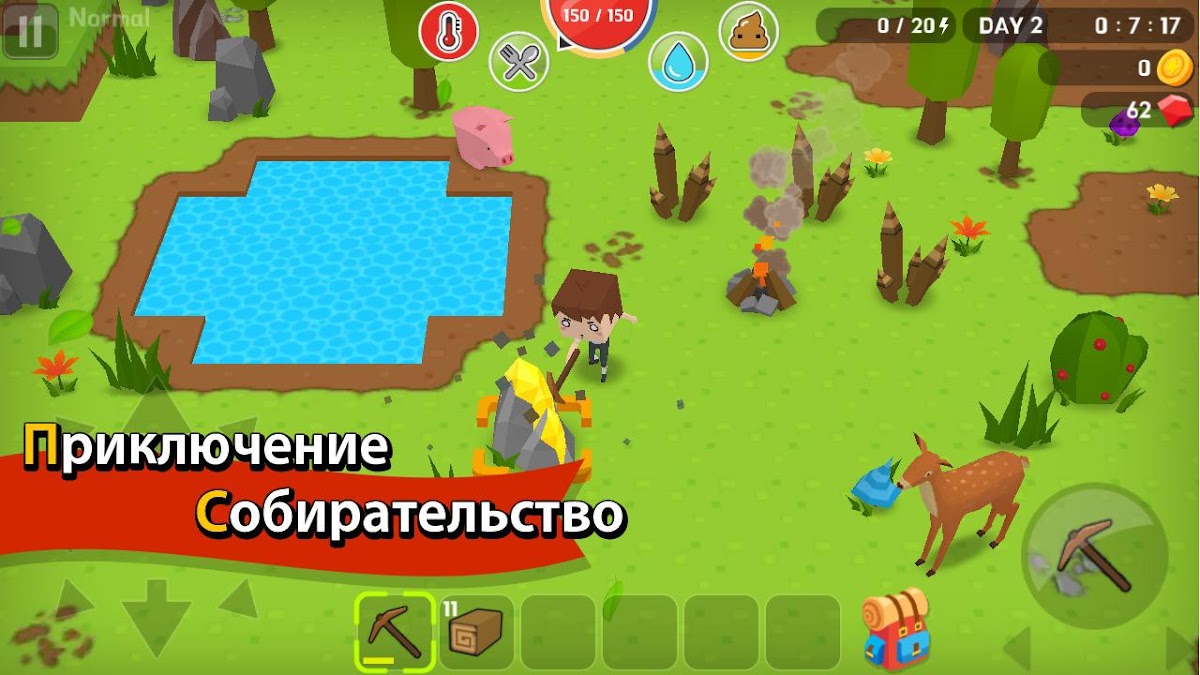 ■ Создавай различные предметы и здания за счет сбора материалов и охоты.