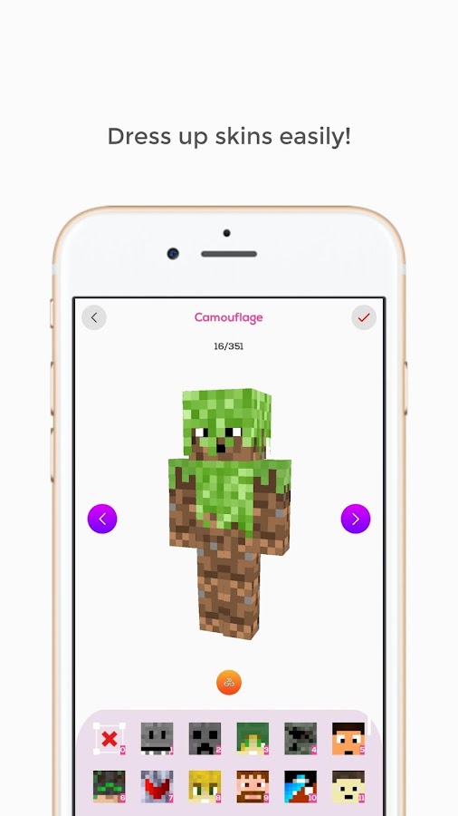 Создавайте качественные скины HD из огромного количества комбинаций скинов. Лучшая одежда для ваших скинов minecraft, получите это бесплатно !!!
