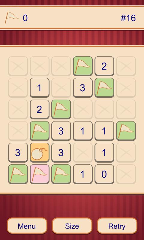 Mines бесплатна и содержит 64 головоломки в 4 разных размерах, от 5×5 до 8×8.