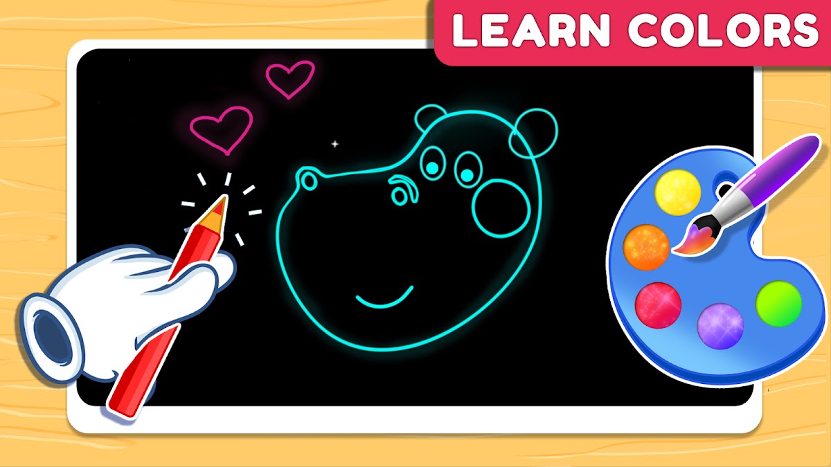 Главный герой нашей игры — это Гиппо, она будет вести детей через множество увлекательных и обучающих игр. Гиппо любит учиться и хочет поделиться своими знаниями со всеми детьми, которые будут играть в нашу игру.
