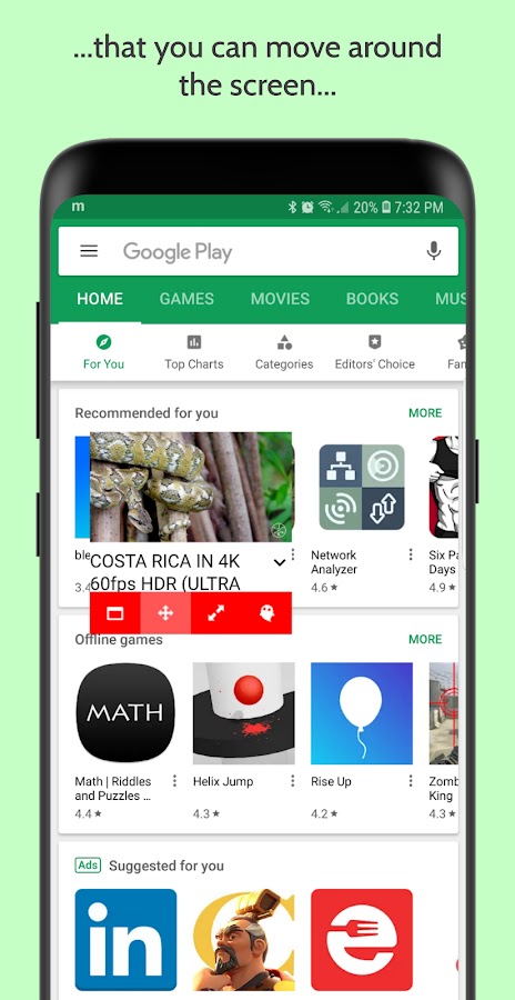 С Minimizer для YouTube вы можете наслаждаться любимыми видео с YouTube на своем телефоне или планшете, одновременно выполняя другие задачи, например просматривая веб-страницы или проверяя уведомления Facebook.