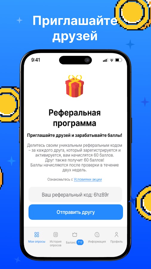 2. Прохождение опросов и накопление баллов