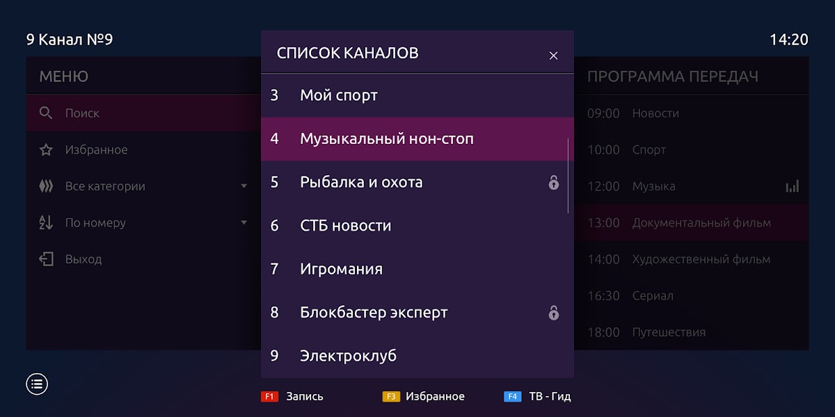 Полный список предоставляемых вам сервисов зависит от набора услуг, предлагаемых вашим IPTV провайдером в рамках приобретенного вами тарифного плана.
