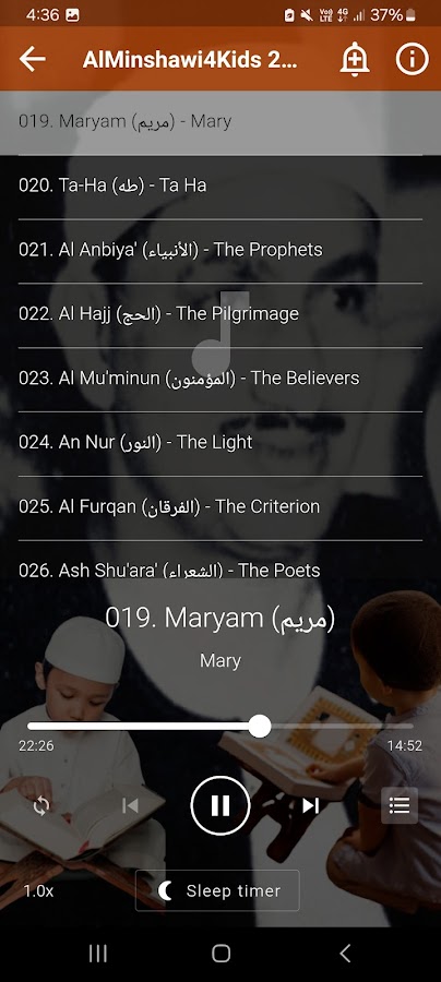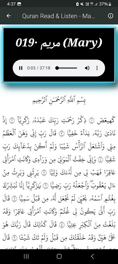 3. Добавлена бонусная активность для пользователей, которые хотят слушать декламацию HD в общественных или шумных местах. Для этого раздела требуется Интернет, но после подключения к сети вы можете воспроизводить чтение Корана в формате HD в одной части вашего дома и слушать его в другой части дома. Подходит для шумных мест. Не слушайте очень громкие звуки, так как это может повлиять на ваш слух. Помните, что часть 2 из 2 по-прежнему воспроизводится БЕЗ ИНТЕРНЕТА.
