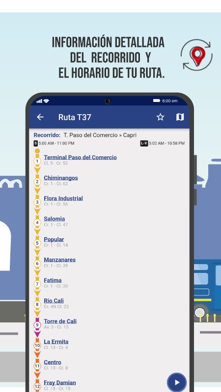 Movilixa Cali ищет вас маршрут с меньшим количеством остановок для перемещения между двумя станциями в системе Mio. С помощью этого приложения получает доступ к информации от каждого из маршрутов, в том числе станций, автобусов, графиков, питателей и карт. Знакомства системы маршрутов (Скоростной, Troncales, Pretroncales и питатели), отображает карты и маршруты этой системы Калите Metrocali. Воспользуйтесь GPS и Google Maps, чтобы найти ближайший к станции шахты или зарядки карты. Все функции, кроме Google Maps, можно получить доступ без Интернета или данных плана.
