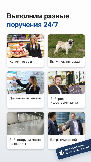 Мы доставляем заказы из ресторанов и магазинов, выполняем любые поручения и помогаем с повседневными делами, чтобы вы могли уделять больше времени себе и своим близким.