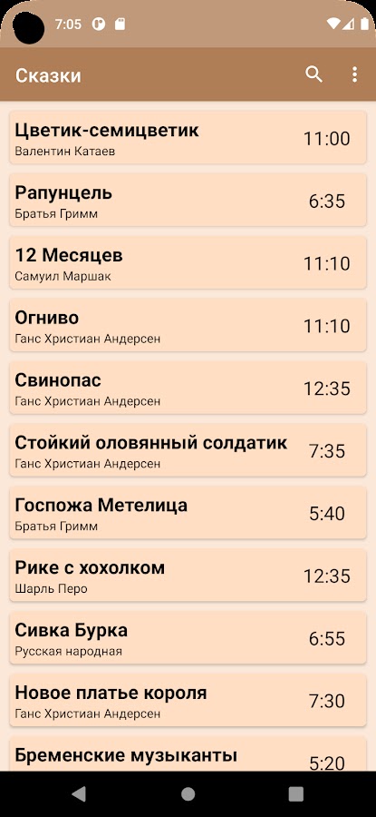 Каждая сказка маркирована примерным временем прочтения, чтобы понимать сколько времени у Вас займет чтение сказки.