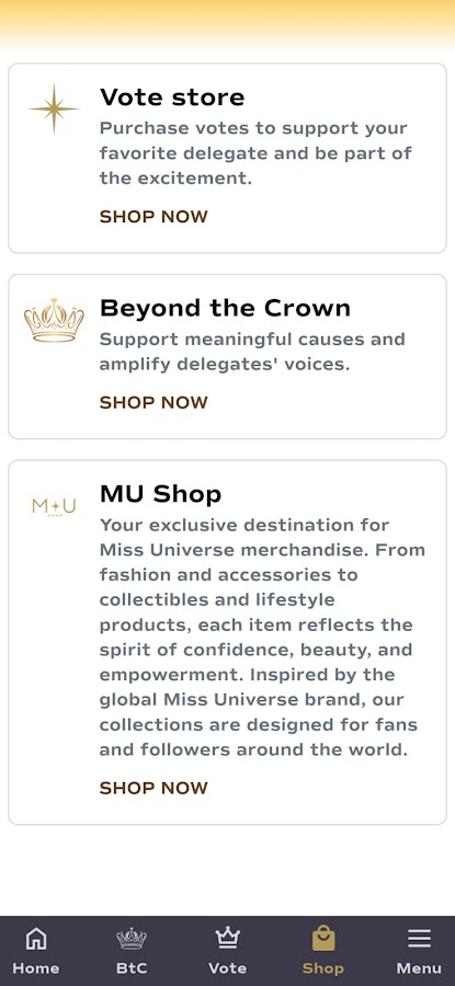 • Будьте в курсе последних новостей о «Мисс Вселенная», расписания официальных мероприятий и закулисных материалов. Получайте уведомления в режиме реального времени о важных обновлениях и периодах голосования.