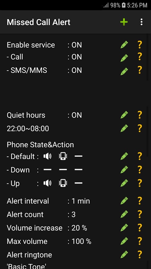 Описание Missed Call Alert