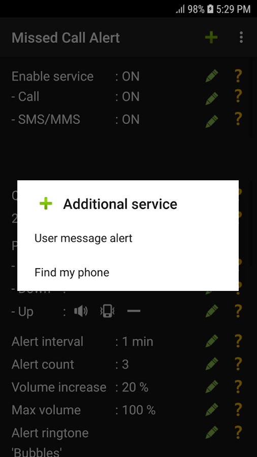 Информация о Missed Call Alert