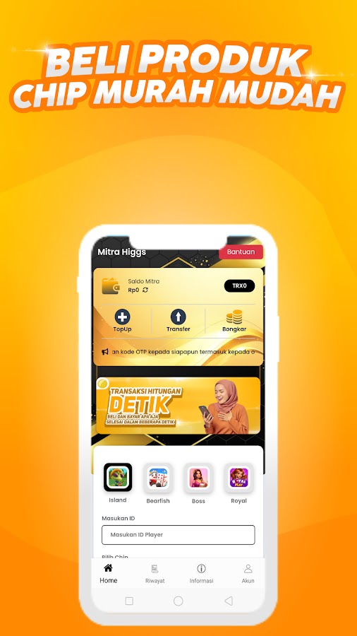 Скачайте приложение Mitra Higgs — Jual Beli Cip для Android бесплатно - последняя версия (7) уже доступна для установки на ваш телефон или планшет.