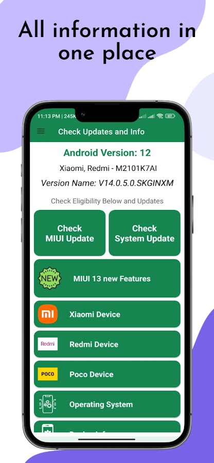 Это приложение отображает список устройств, получивших обновление Miui 13. Таким образом, вы можете легко понять, какая модель устройства получает обновление. Кроме того, это приложение поможет вам проверить наличие обновлений Miui и системы на вашем телефоне. Более того, вы можете легко просмотреть различную информацию об устройстве, которая может быть вам полезна.