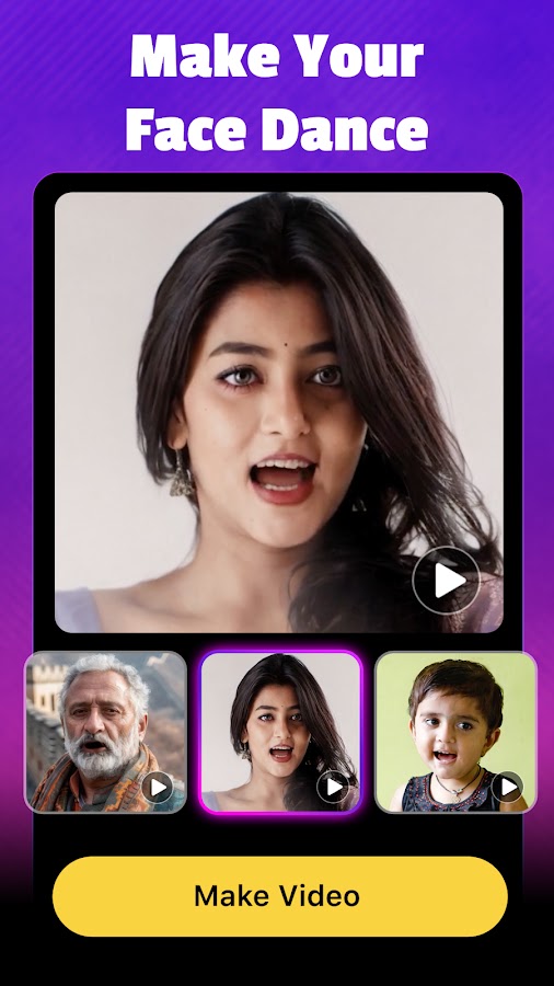 Новые шаблоны Face Dance: поднимите веселье на новый уровень с Face Dance! Представьте себе магию того, как оживают ваши любимые портреты, Mivo Face Dance Animation Player оживляет ваше лицо забавными выражениями и движениями. Почувствуйте будущее фотоанимации с Mivo и наблюдайте, как ваши селфи обретают собственную жизнь.