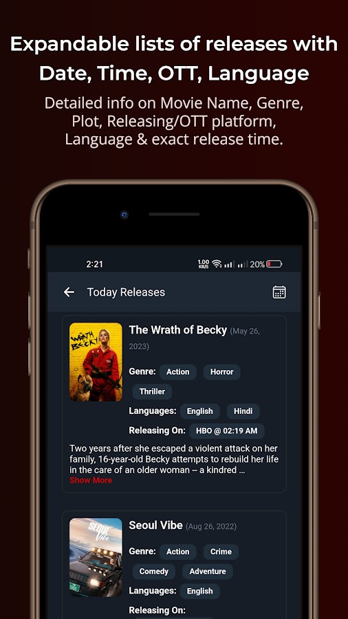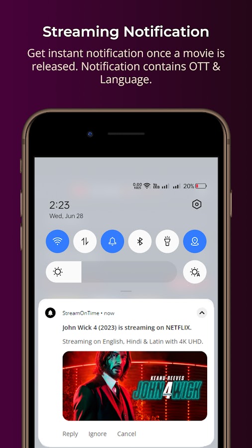 • Получайте мгновенные уведомления после выхода фильма. Уведомление содержит OTT и язык.