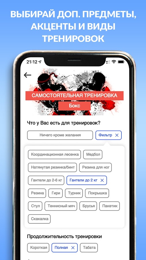 — Выбор фильтров по типу (утяжелители, резина, гири, гантели, координационная лесенка, теннисный мяч и т.д.)