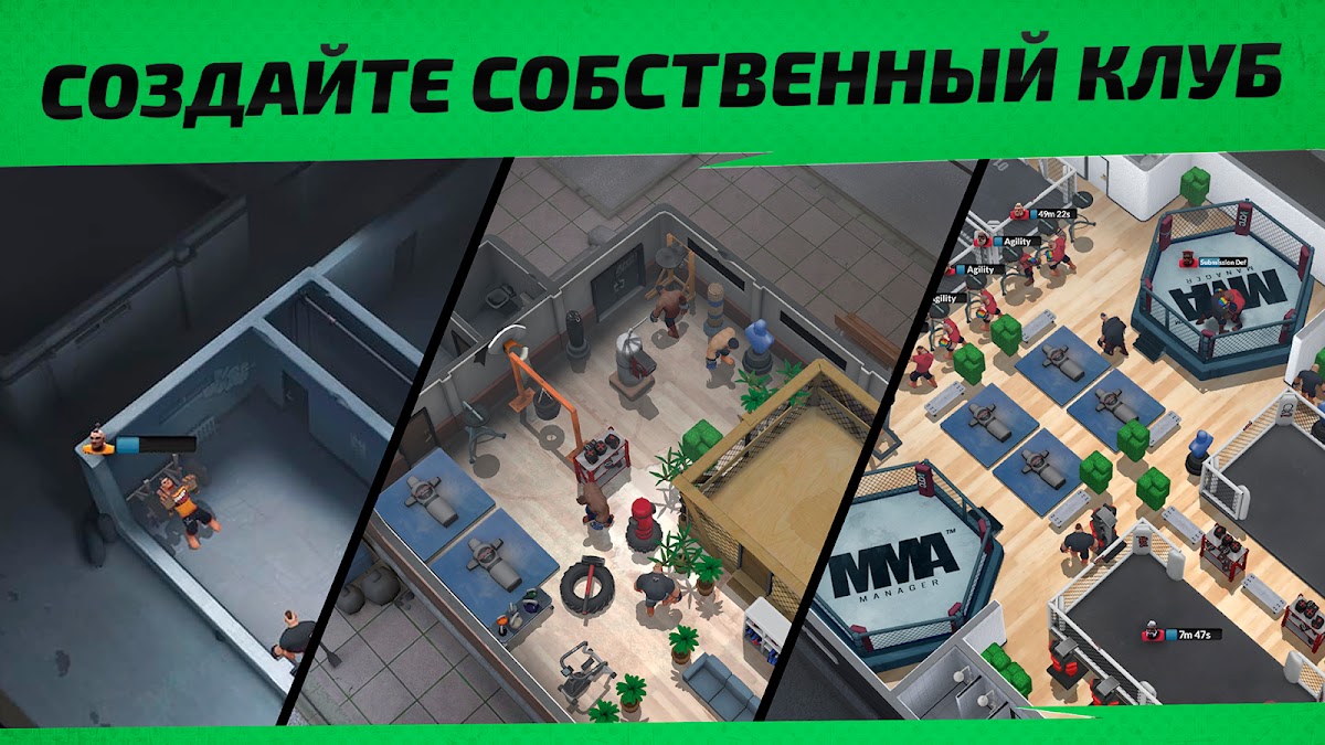 Постройте карьеру в мире менеджмента MMA. Нанимайте тренеров, покупайте залы и оснащайте их самым современным оборудованием, планируйте бои, подбирайте тренеров, которые знают, что делать на ринге, и, конечно, ищите будущих чемпионов!