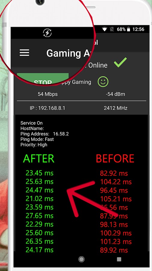 Мобильный игровой инструмент ping anti lag для всех игр предлагает вам самый простой, но в то же время наиболее практичный и полезный способ без особых усилий запускать более плавные онлайн-игры и расширяет возможности онлайн-игр на вашем мобильном телефоне. Просто щелкнув приложение без задержек, вы получите самый быстрый пинг без проблем с задержками для своих игр. Это приложение отлично подходит для игр без проблем с лагами. У вас будет лучший игровой процесс без задержек в игре. Иногда низкая графика также может помочь уменьшить пинг и уменьшить задержку в игре.