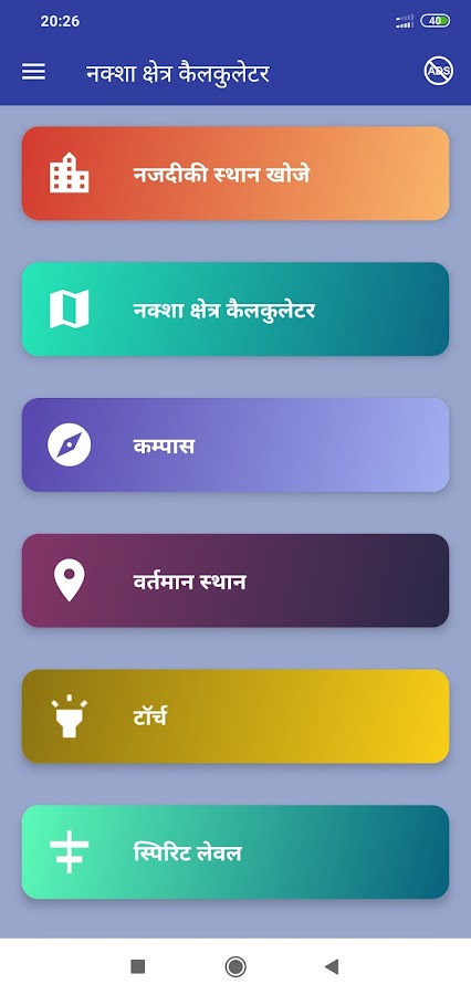 🌟 Основные характеристики приложений на хинди «Калькулятор площади карты»: