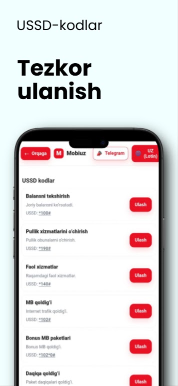 Информация о Mobiuz mobil ilovasi