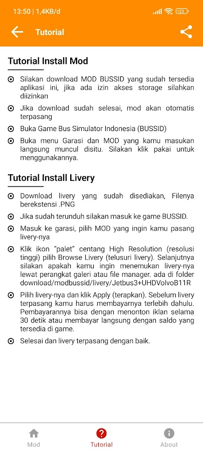 Это приложение содержит моды транспортных средств для игры BUSSID, сама игра BUSSID представляет собой игру-симулятор вождения автобуса. В этой игре игроки могут использовать моды для добавления транспортных средств. Было создано множество модов, таких как мод галопового грузовика, автобус Jetbus 3+ SHD, SR2 XDD, Kids Panda, Sandpaper, MSM, Winspector, Jetbus 5 и многие другие.