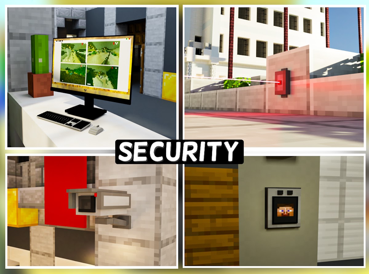 Cameras and security system — MOD MCPE is an unofficial application for Minecraft Pocket Edition. This application is not affiliated in any way with Mojang AB. The Minecraft Name, the Brand and the Assets are all property of Mojang AB or their respectful owner.