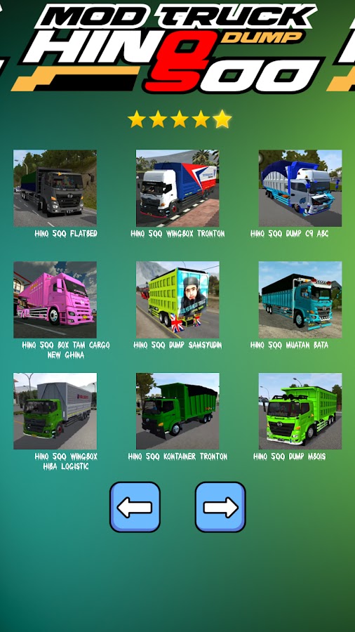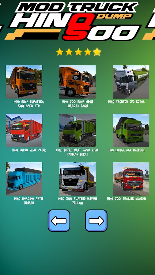 Ребята, с последним обновлением индонезийского мод-симулятора автобуса, в комплекте с полным стробом, интересно, есть ли у вас последняя коллекция модов для грузовиков с прицепами hino, которая включает в себя: мод грузовик с грузовым прицепом hino, мод грузовик с прицепом hino 700, а также Модный грузовик hino 500 с углем, конечно. Интересно для вас, ребята. Полная ливрея для симулятора индонезийского автобуса присутствует в ливрее прицепа для грузовика bussid, которая включает в себя окраску мода для крыльевого короба bussid Truck hino 500 и его класс, который состоит из мод-грузовика hino dutro в ливрее самосвала, окраски мод-грузовика hino mod с загрузкой песка, а также Окраска грузовика hino mod с новыми земляными шипами для любителей коллекции модов для контейнерных грузовиков tronton bussid 2024 года, а также для коллекции модов bussid Truck Canter 2024. В индонезийском варианте симулятора автобуса мод bussid на этот раз представляет новейшие функции, помимо мод obb bussid 2024 или кодовое имя bussid 2024, есть также функция карты индонезийского симулятора автобуса с различными. Последняя версия местности включает карту bussid, последнюю карту местоположения маршрута. Для любителей модификаций самосвалов Bussid наш новейший вариант мод-грузовика Hino 500 представляет различные модификации самосвалов Bussid, а также модные грузовики-контейнеры с тяжелыми грузами, которые определенно подойдут для вашей коллекции.