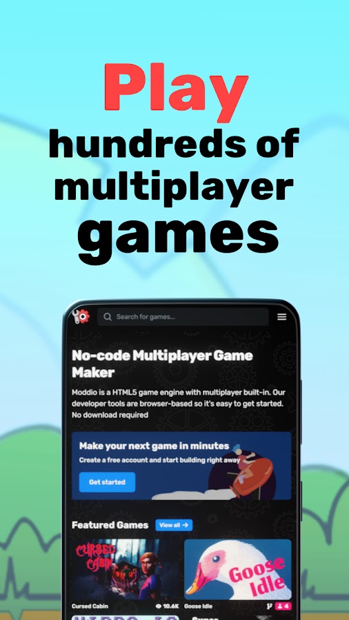 Moddio — это место, где можно играть и создавать многопользовательские игры. Присоединяйтесь к тысячам игроков и исследуйте невероятные миры, созданные такими же людьми в сообществе, как и вы!