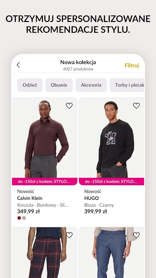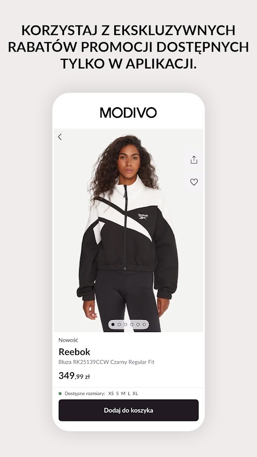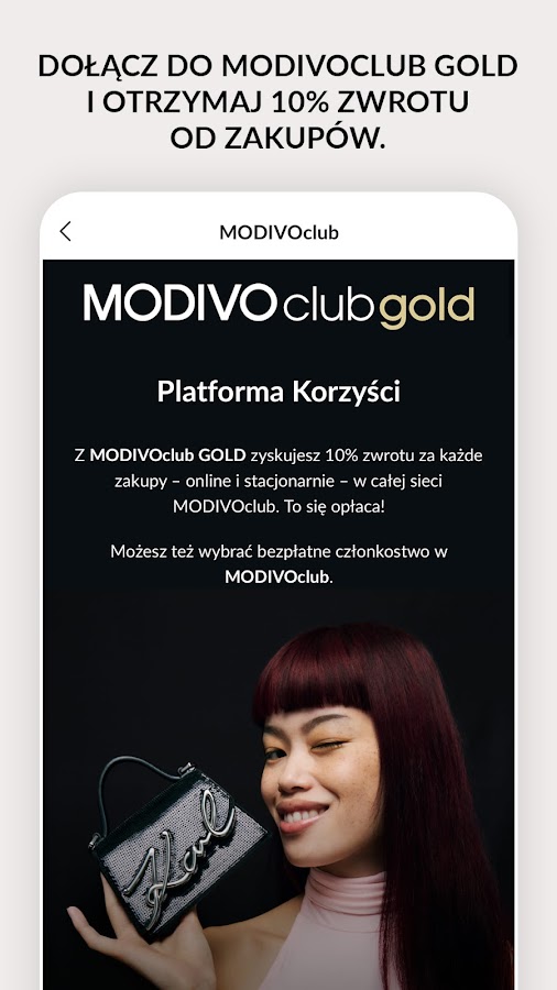 Установите наше мобильное приложение. Добавьте выбранные товары в корзину на сумму от 349 злотых и получите скидку на первую покупку по промокоду MYAPP. Подробности в условиях использования https://modivo.pl/b/newapp