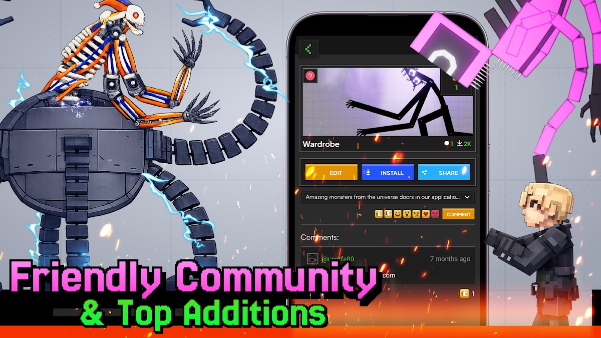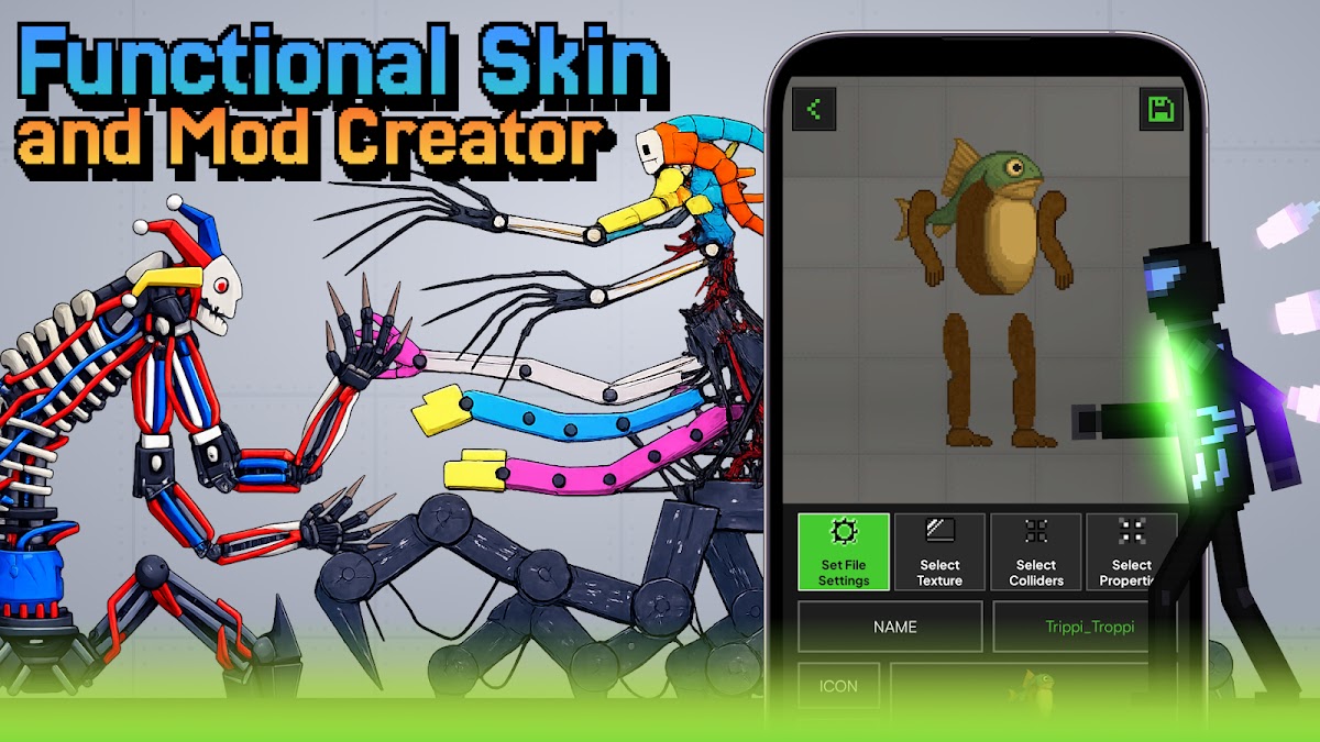 Теперь наше приложение содержит не только полезные моды, но и функциональный создатель модов! Наша коллекция модов дает игрокам множество возможностей для создания уникальных предметов с помощью создателя модов, разработанного в нашем приложении. Mod Creator позволит вам создавать, редактировать и изменять существующие аддоны еще веселее. Здесь вы всегда можете изменить размер, текстуру и другие важные вещи. Моды для Melon Playground дают вам возможность не иметь ограничений в ресурсах, единственным ограничением является ваше воображение.