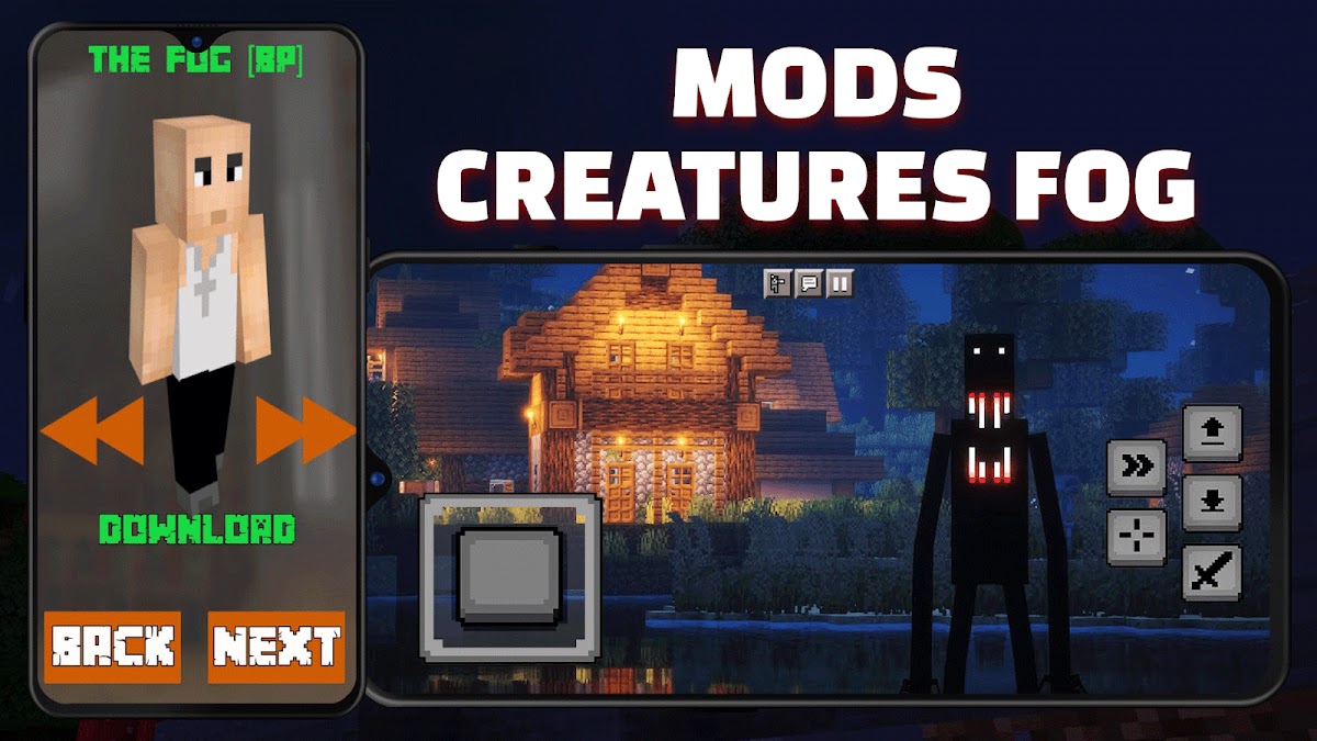 Наше приложение очень простое и интуитивно понятное, также содержит инструкции по установке и экспорту дополнений и модов в игру, просто выберите нужный вам мод, например Fog Creatures addon, нажмите установить и следуйте инструкциям для запуска дополнения внутри игры. Также в приложении вы сможете найти крутые и разнообразные скины, которые вы сможете использовать в своем пиксельном мире Майнкрафта.