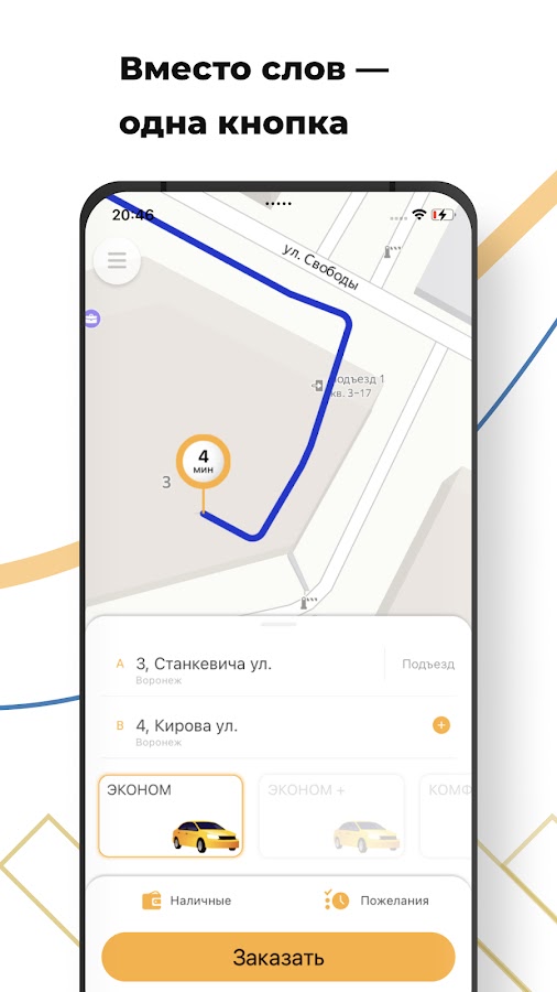Откройте приложение, укажите адрес и закажите такси, нажав на одну кнопку.