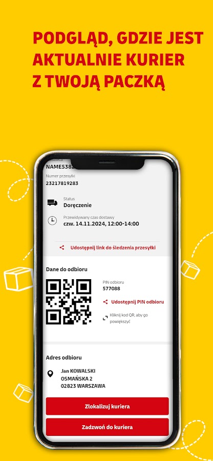 Приложение My DHL создано для удобного управления отправлениями. Оно предлагает ряд функций, упрощающих управление отправлениями, включая отслеживание статуса отправления, управление вариантами доставки, перенаправление отправлений в терминал DHL BOX 24/7 или POP, а также отправку внутренних и международных отправлений. Приложение также позволяет отслеживать местоположение курьера на карте и при необходимости связываться с ним по телефону. Для вашего удобства терминалы DHL BOX 24/7 предлагают функцию удалённого открытия ячейки, что позволяет забрать отправление бесконтактным способом.